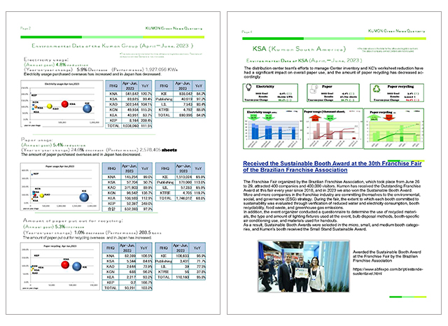 Every quarter, the Kumon Group distributes the Kumon Green News Quarterly in Japanese and English to all Group companies.