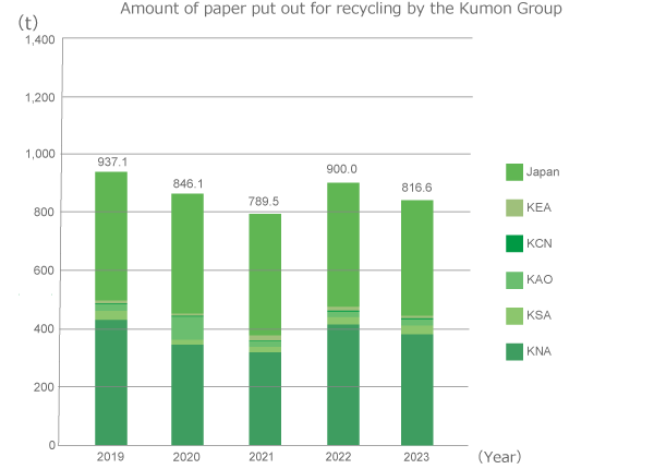 The Kumon Group as a whole was able to reduce paper consumption by 15.8% and the basic unit (paper consumption/sales) by 21.1%.