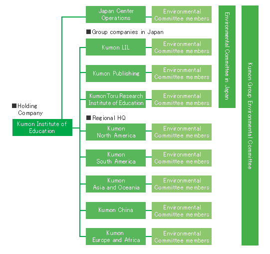 The Kumon Group promotes its environmental activities by appointing Environmental Committee members at each group company.