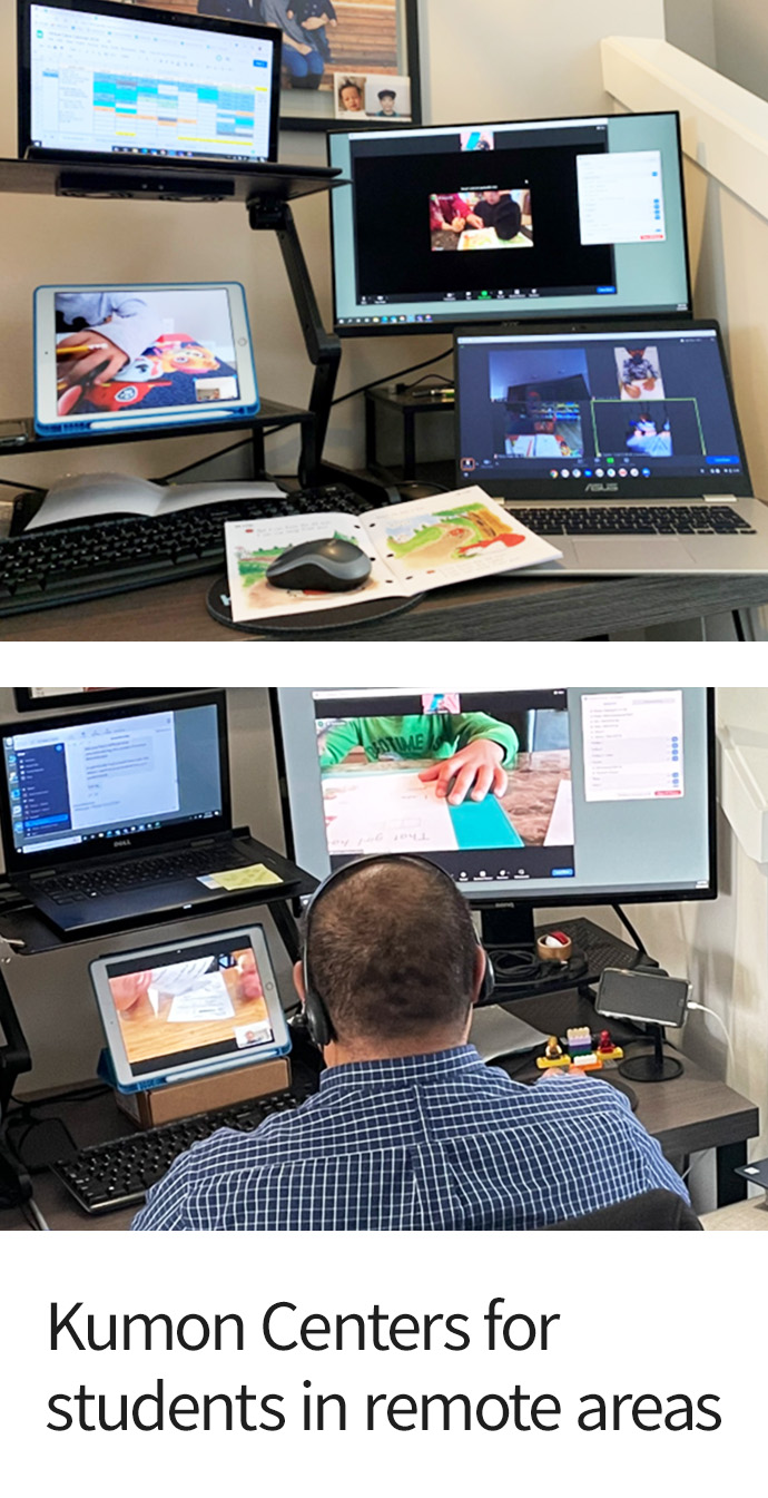 In Canada, we have established Kumon Centers for students in remote areas who have difficulty accessing traditional Kumon Centers. This initiative introduces Kumon Connect, an environmentally friendly learning model that replaces the traditional method of using paper and pencils.